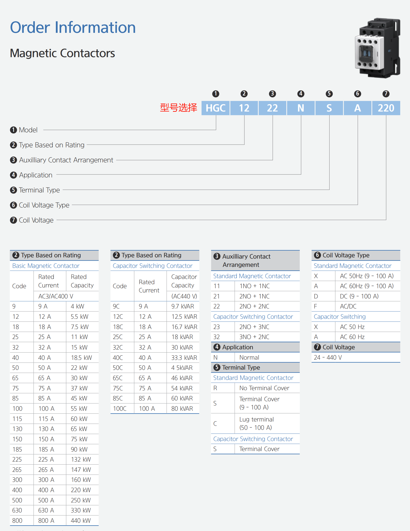 韩国现代HYUNDAI接触器HGC25 AC220V(HGC25 22NS A220C) 替代HIMC22/UMC25